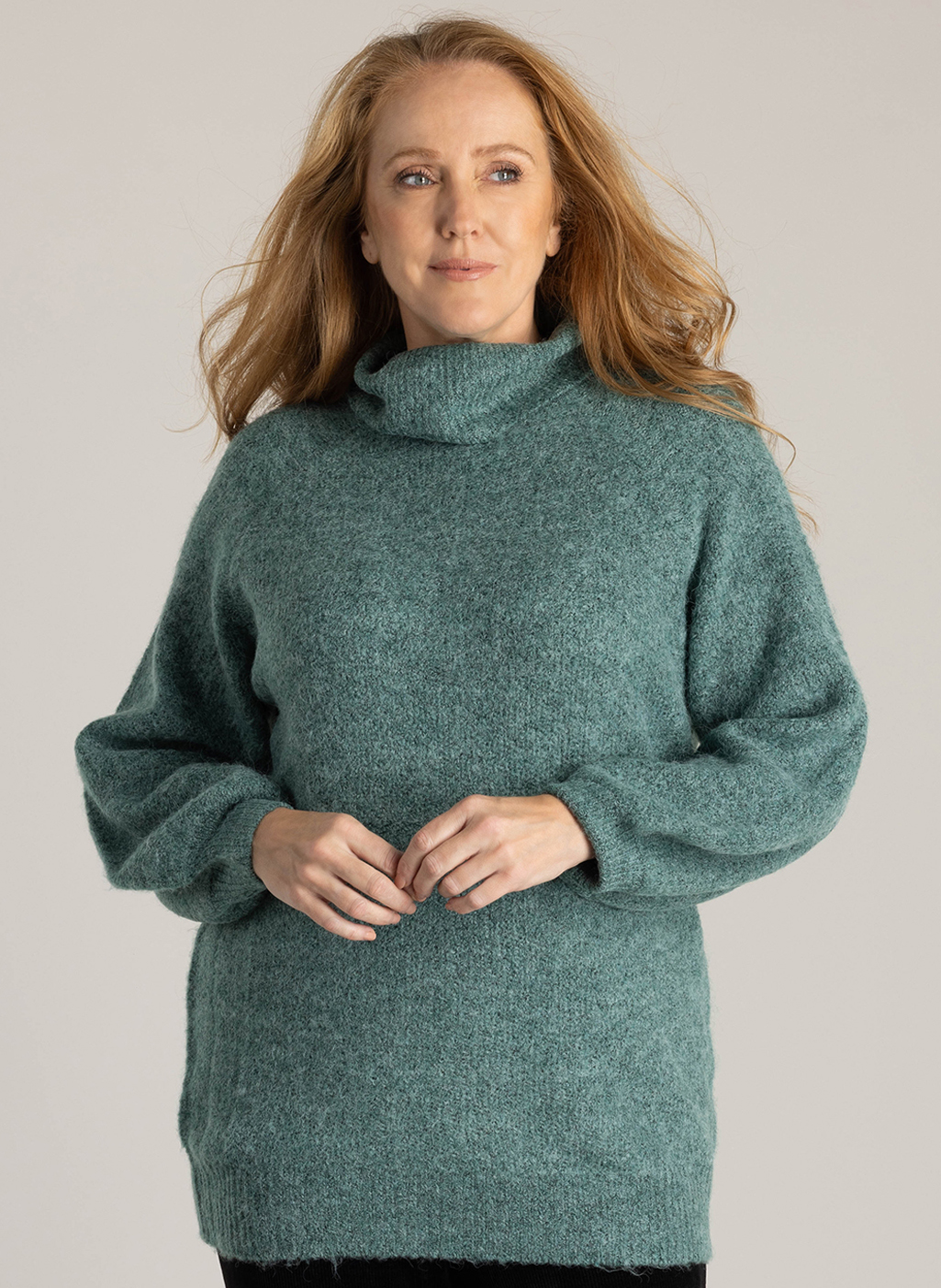 Het model heeft een comfort fit en een lengte van 74 cm, waardoor hij mooi over de heupen valt. De hoge col biedt extra warmte, terwijl de wijde mouwen een eigentijdse uitstraling geven en voldoende bewegingsvrijheid bieden. Dankzij de zachte structuur is deze trui ideaal voor dagelijks gebruik en eenvoudig te combineren met broeken, jeans of rokken voor een complete plus size look.