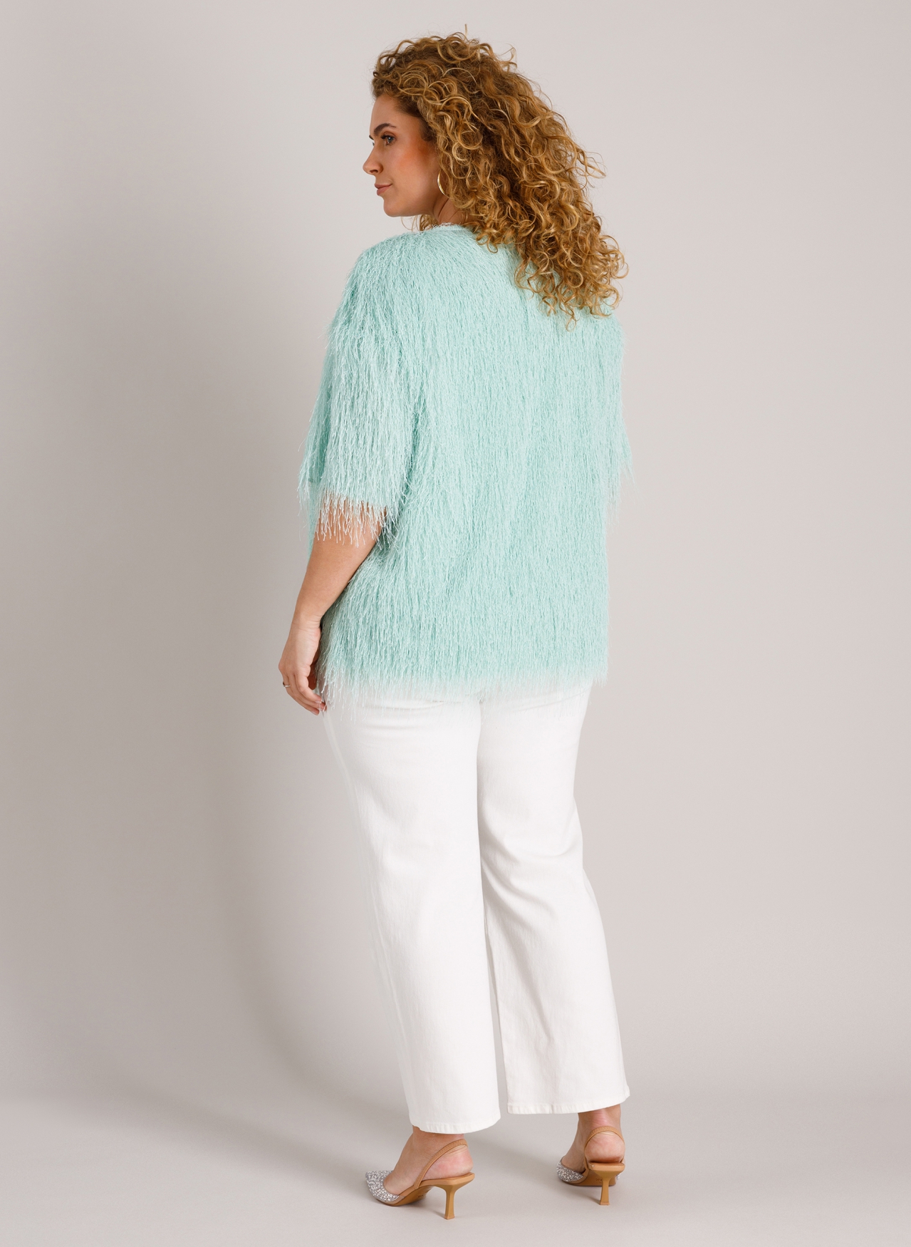 Heeft u zin in een kledingstuk dat net even anders is? Dit pastelgroene vestje van het merk Yest Curve brengt direct een frisse en zachte boost aan uw dagelijkse look. Het is een opvallend item binnen onze collectie grote maten kleding, speciaal voor dames die houden van een unieke twist. De harige structuur van de stof geeft het vest een onverwachte en speelse uitstraling, terwijl de zachte kleur zorgt voor een vrouwelijk geheel. Dit maakt het een ideaal kledingstuk voor zowel een informele middag als een gezellig avondje buiten.