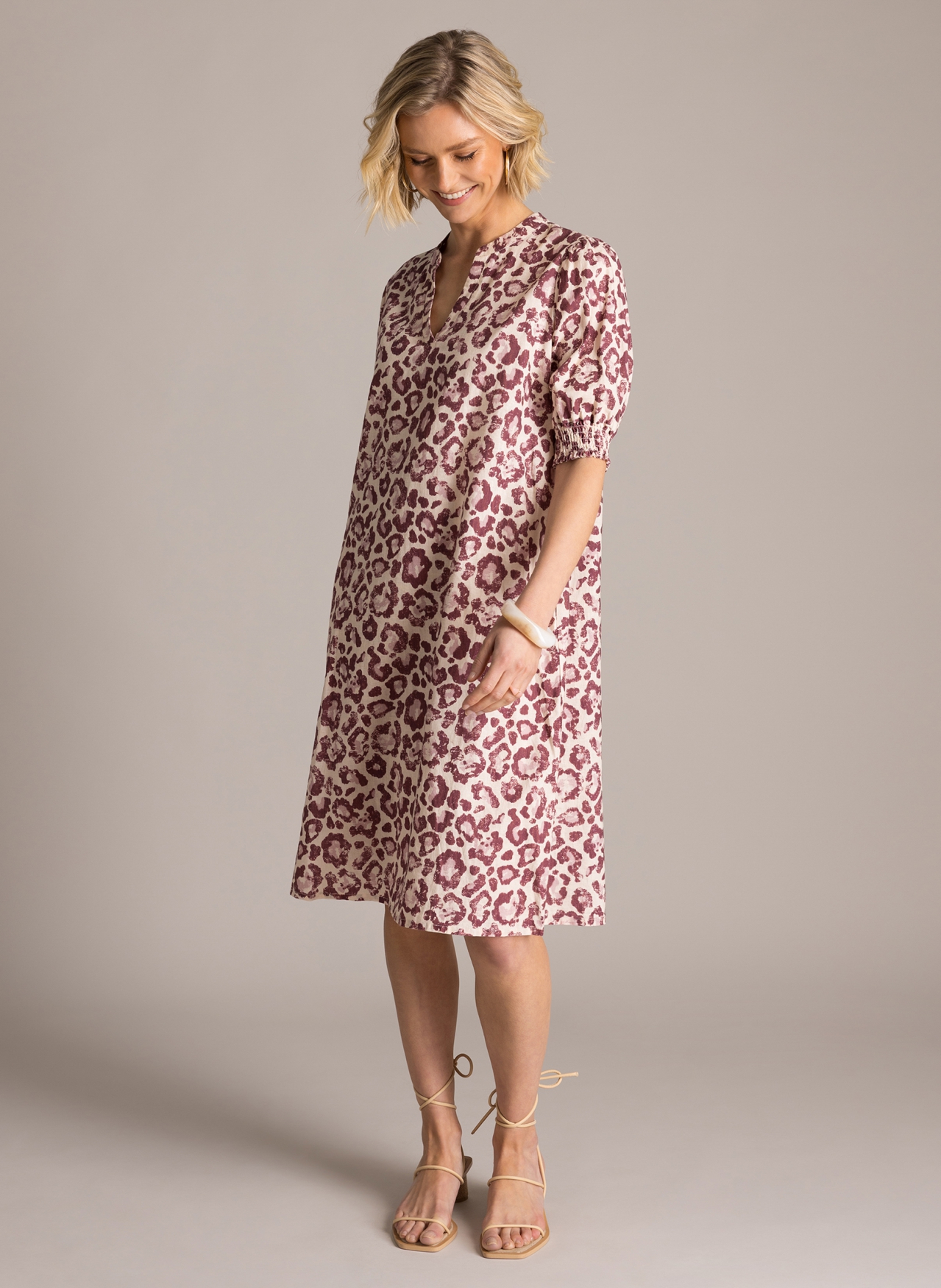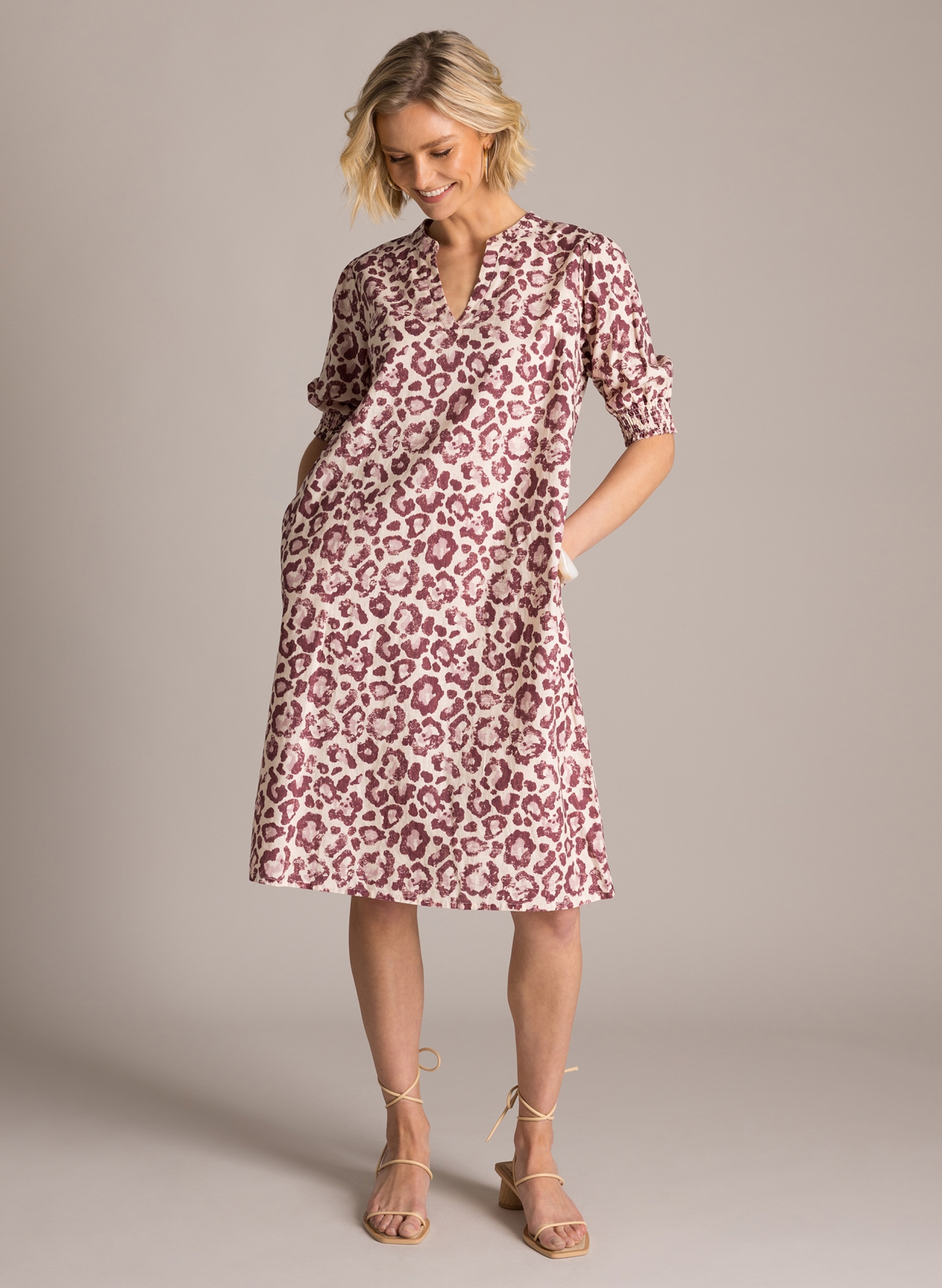Deze Yest jurk heeft een comfortabele pasvorm en een lengte van 105 centimeter, waardoor het model netjes op of over de knie valt. De losse snit en de korte mouwen zorgen voor precies die ontspannen vibe waar u op zomerse dagen naar zoekt. De levendige plumkleurige print geeft het geheel net wat extra pit. In de wereld van grote maten kleding is dit een heel praktisch en vrouwelijk item dat u eenvoudig combineert met een paar leuke sandalen of slippers. Bij Bagoes vinden we het belangrijk dat mode zowel modern als prettig draagbaar is.