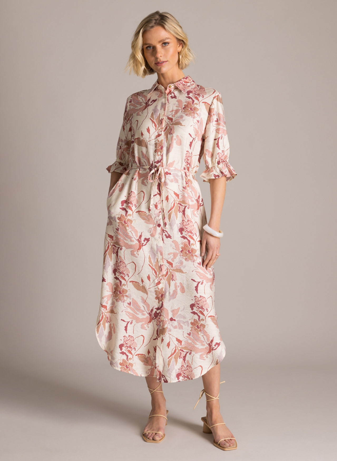 Deze Yest maxi-jurk heeft een totale lengte van 130 centimeter en valt daardoor prachtig lang. Het doorknoopmodel en de charmante rufflemouwen geven de jurk een vrouwelijke en verzorgde uitstraling. In de wereld van grote maten kleding is dit een heel veelzijdig artikel dat u moeiteloos kunt dragen naar een zomerse gelegenheid of tijdens een vrije middag. Bij Bagoes vinden we het belangrijk dat elke vrouw zich zelfverzekerd en modieus voelt. Deze jurk biedt precies de juiste combinatie van een moderne stijl en een luchtig draaggemak.
