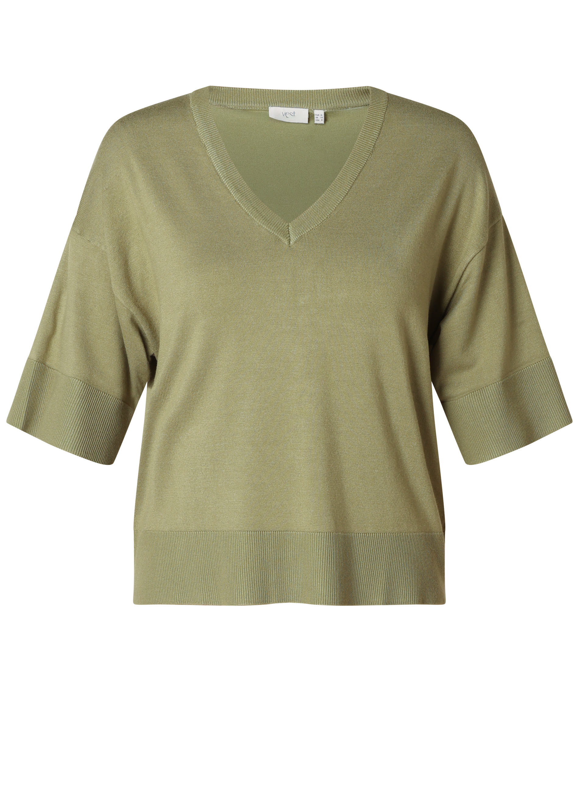 Deze Yest trui heeft een ontspannen "comfort fit" en is voorzien van een vrouwelijke V-hals en halflange mouwen. Met een lengte van 60 centimeter is dit een ideaal item voor uw dagelijkse garderobe. In ons assortiment voor grote maten kleding is deze trui een veelzijdige basic die u eenvoudig kunt combineren met een nette pantalon of een vlotte jeans. De trui is verkrijgbaar in de prachtige zomerse tinten Naturel, Pale Blue, Botanic Green en Plum. Bij Bagoes vinden we het belangrijk dat mode voor vrouwen met een rondere vorm zowel modern als comfortabel is.