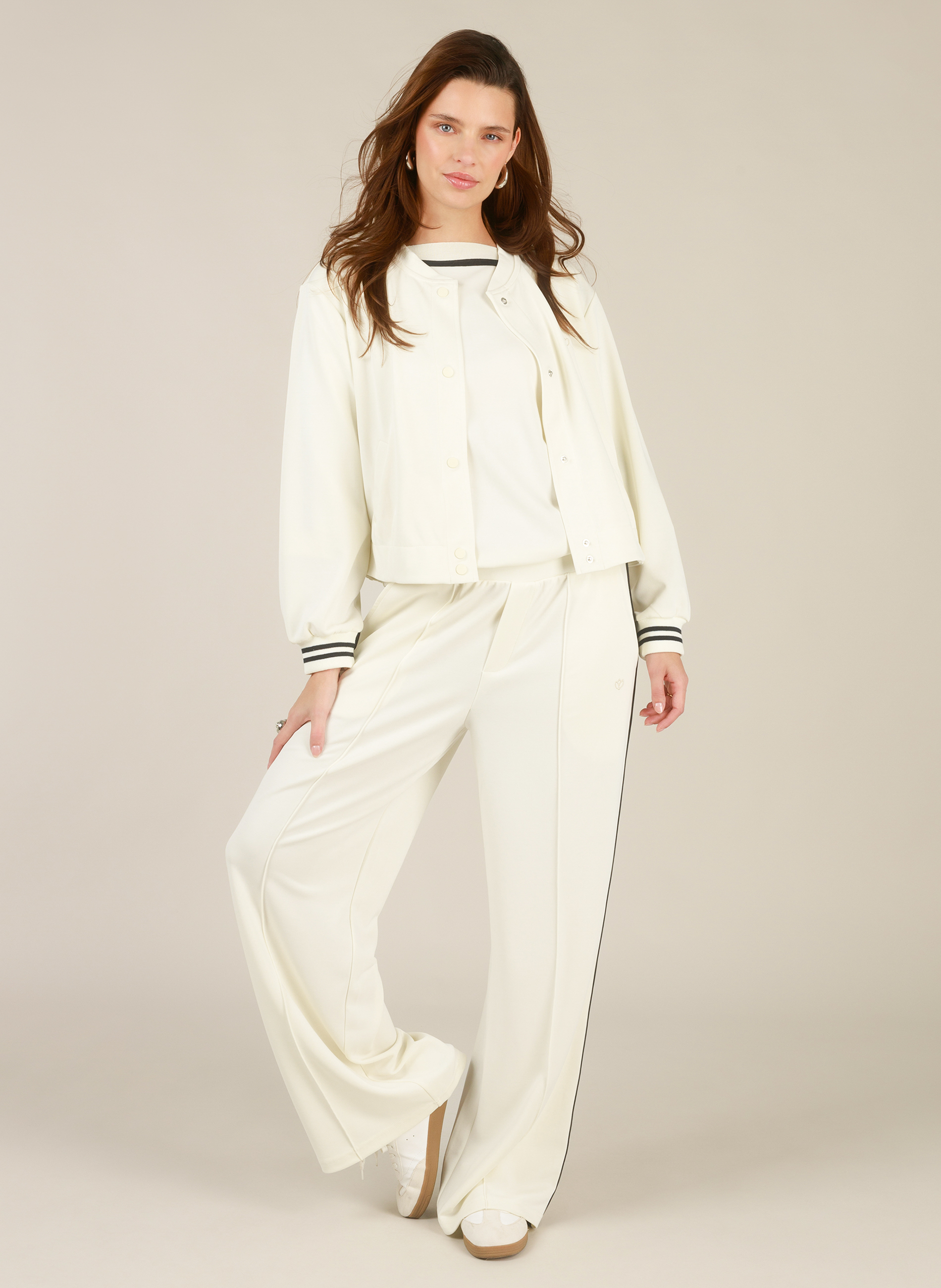 Het jasje is verkrijgbaar in navy en antique-white, kleuren die eenvoudig te combineren zijn met je favoriete tops en broeken. Met een lengte van 55 cm valt het jasje mooi over je taille en is het ideaal als comfortabel layering piece voor elke dag. De zachte kwaliteit van 48% polyester, 48% modal en 4% elastaan zorgt voor een soepelvallend en prettig draaggevoel.