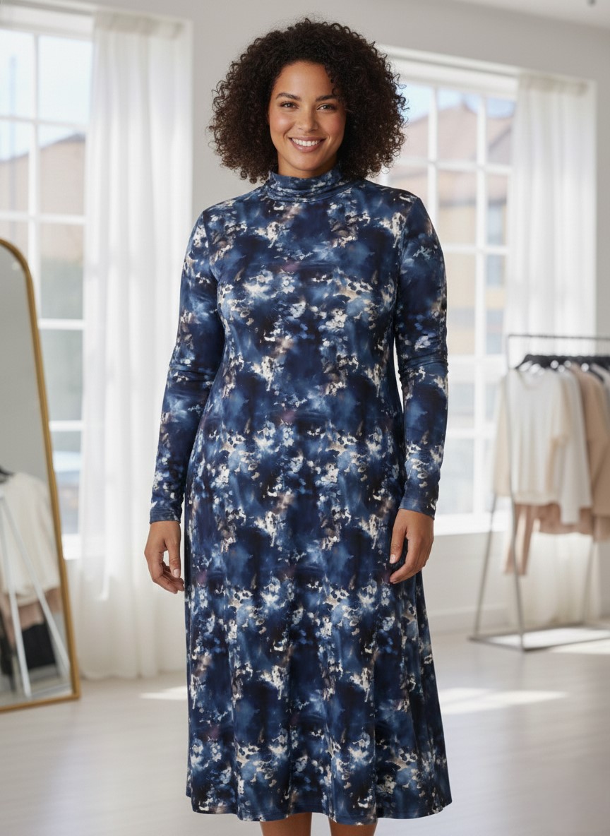 YESTA jurk tricot print lang | A004978dbmc50  YESTA jurk tricot print lang | A004978dbmc50