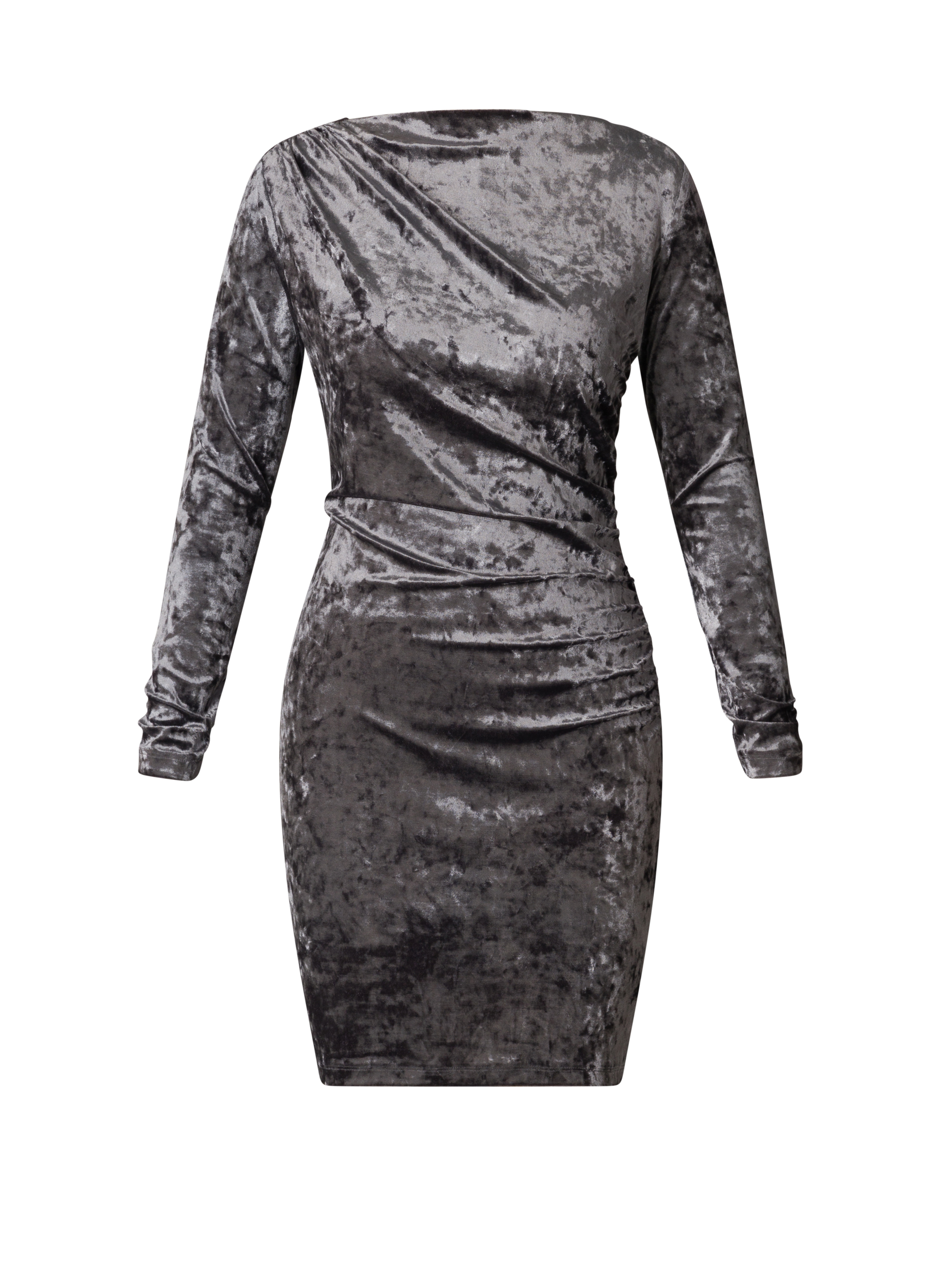 YESTA jurk verlour elastiek detail | A005068grey50  YESTA jurk verlour elastiek detail | A005068grey50  YESTA jurk verlour elastiek detail | A005068grey50