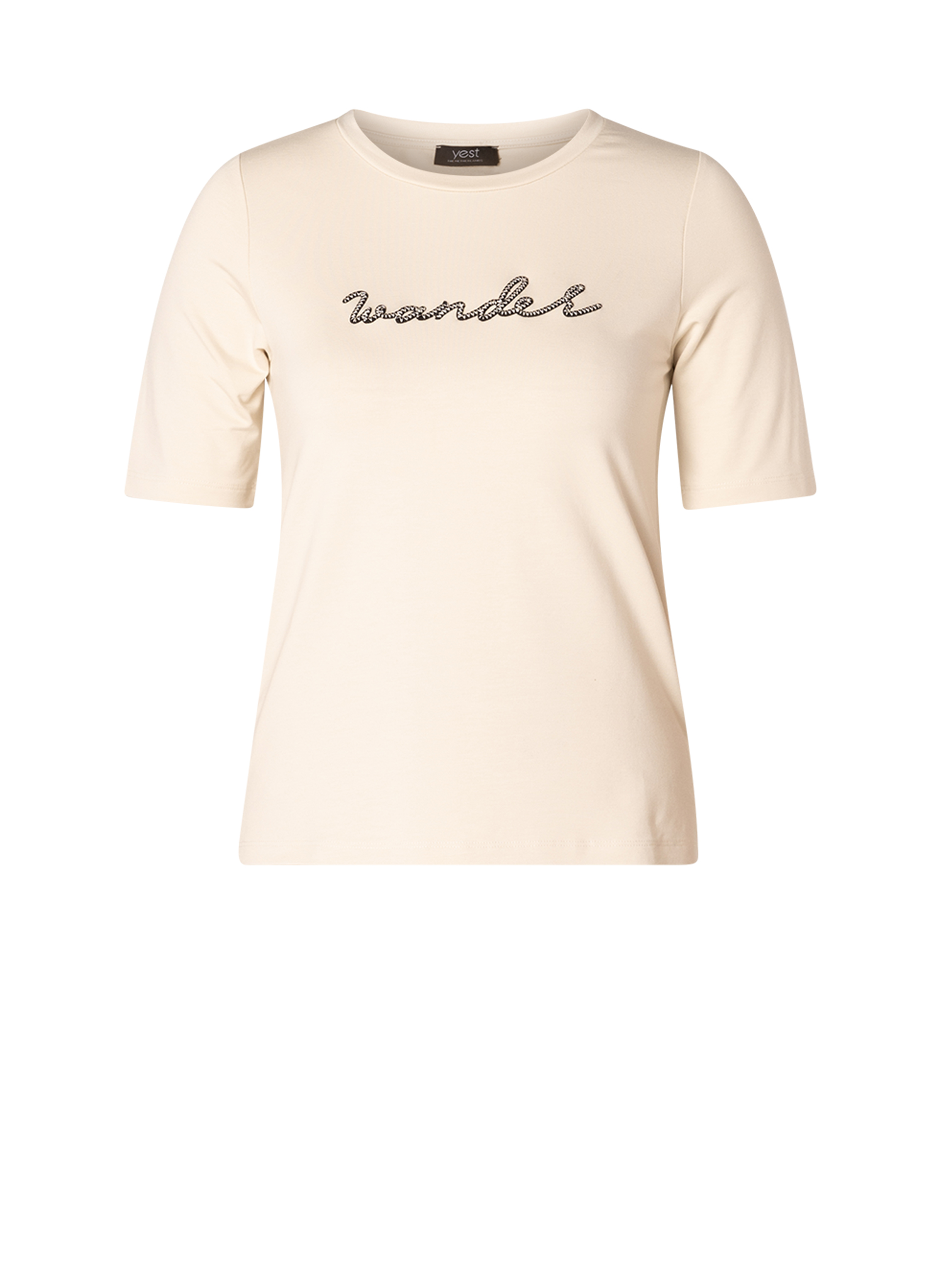 T-shirt in een wat dikkere kwaliteit met een geborduurde tekst voorop. De Bel van YESTA heeft een Regular Fit en is gemaakt van 48% Modal, 48% Katoen en 4% Elastaan. Dit jersey shirt is verkrijgbaar in Black, Faded Grey en Soft Sand. ​Je vindt meer shirts in de categorie grote maten shirts.