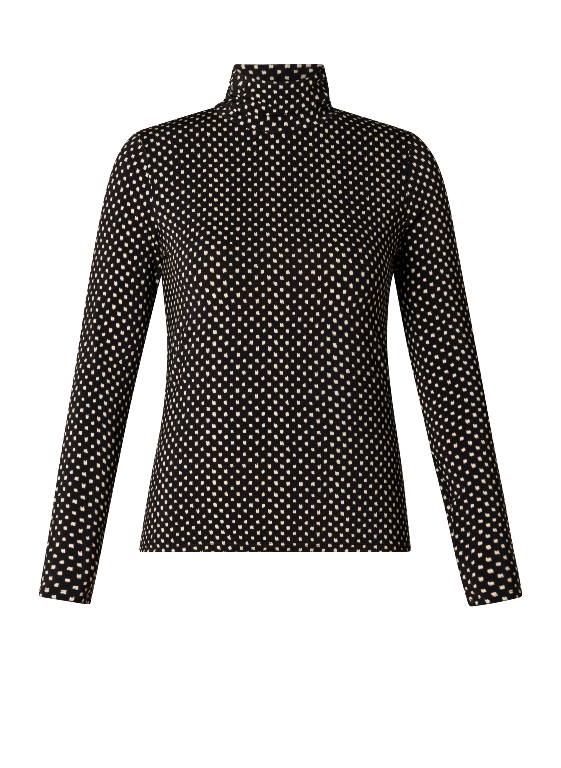 Gladde Yesta top met een kol in een zwart-wit printje. Slim fit. De Daniela Essential is 72 cm lang. ​Je vindt meer shirts in de categorie grote maten shirts.