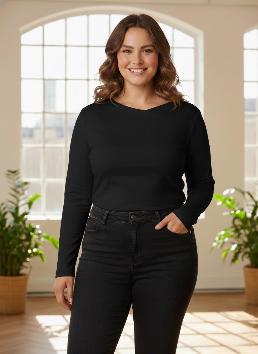 Yesta t-shirt met A-symetrische halslijn in een slim-fit. De Rosally is verkrijgbaar in 5 kleuren. Lengte 72 cm. ​Je vindt meer shirts in de categorie grote maten shirts.