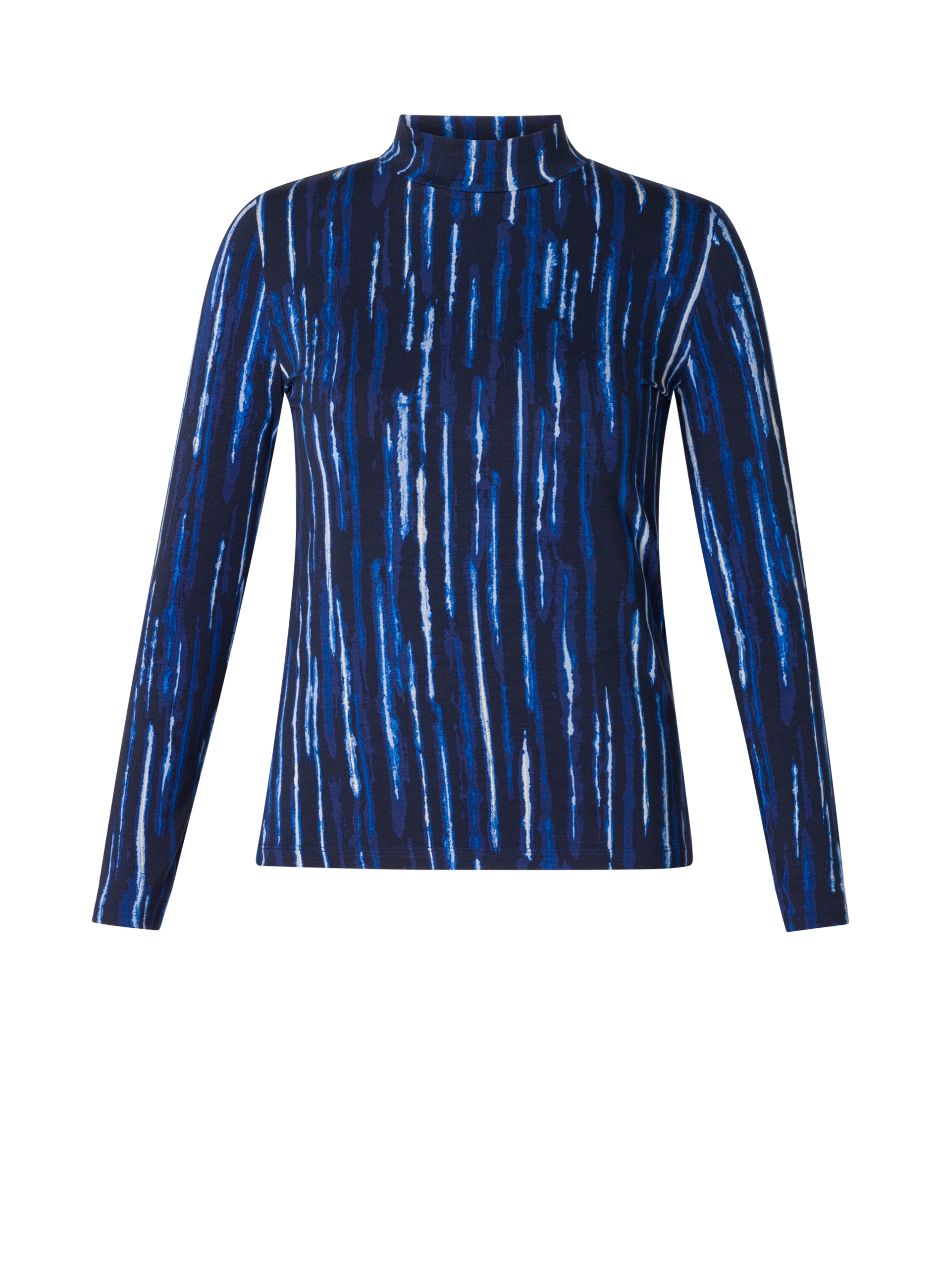 Longsleeve van Yesta met een blauw dessin. Dit model met een slim fit heeft een turtle nek en lange mouwen. ​​De Verani Essential is 74 cm lang. Je vindt al onze shirts in de categorie grote maten shirts.