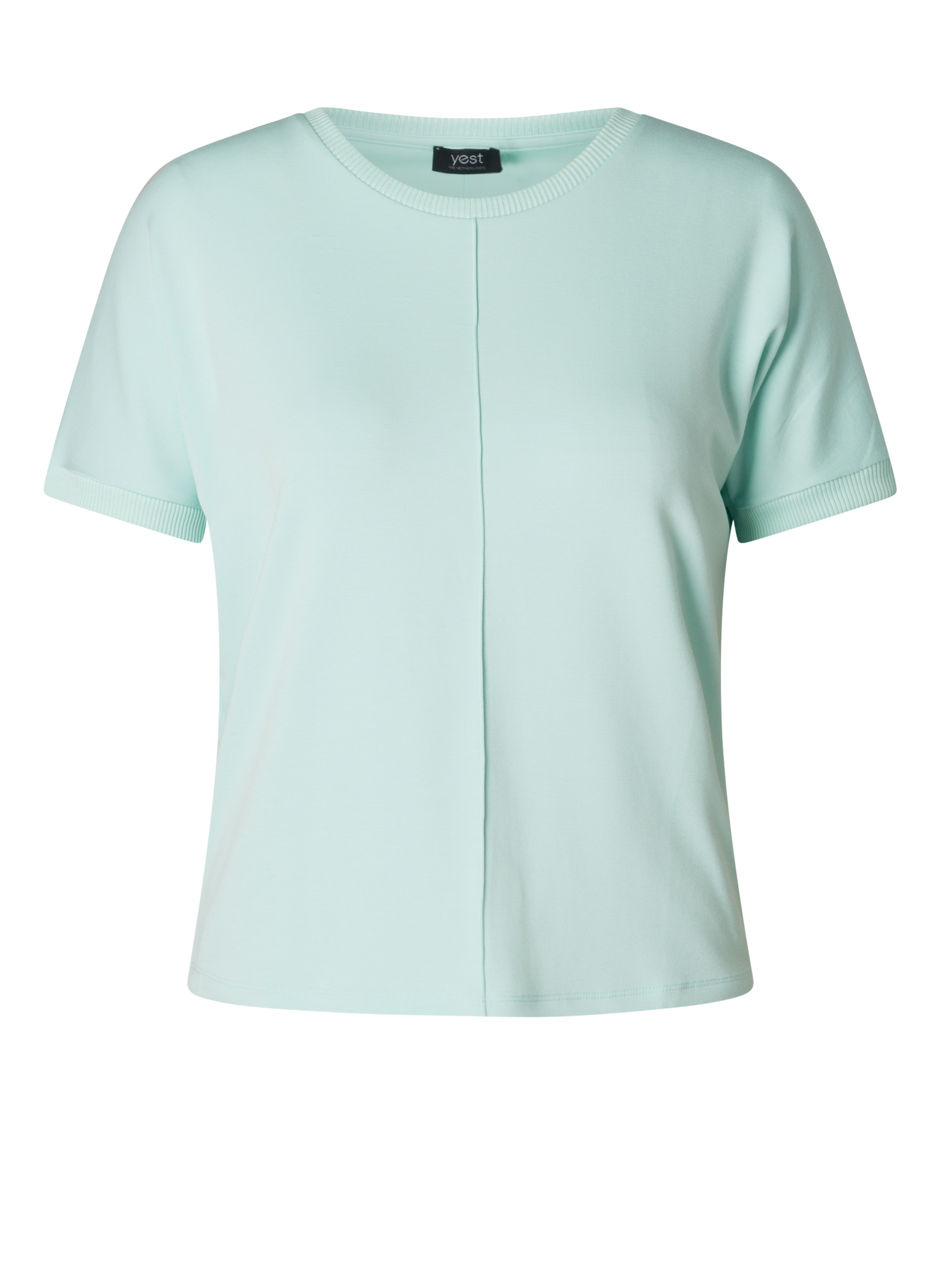 Het Yesta mintgroen shirt met korte mouw is een fijne basic binnen de collectie grote maten kleding van Bagoes. Dit Yesta shirt heeft een rechte pasvorm en valt soepel langs het lichaam, waardoor het ideaal is voor plus size vrouwen die comfort en een mooie lijn willen combineren. De ronde hals en de subtiele naad middenvoor geven dit model een rustige, verzorgde uitstraling. Met een lengte van 70 cm valt het shirt mooi over de heup. Perfect om te dragen op een broek, rok of onder een vest. Een veelzijdig item binnen je plus size garderobe.