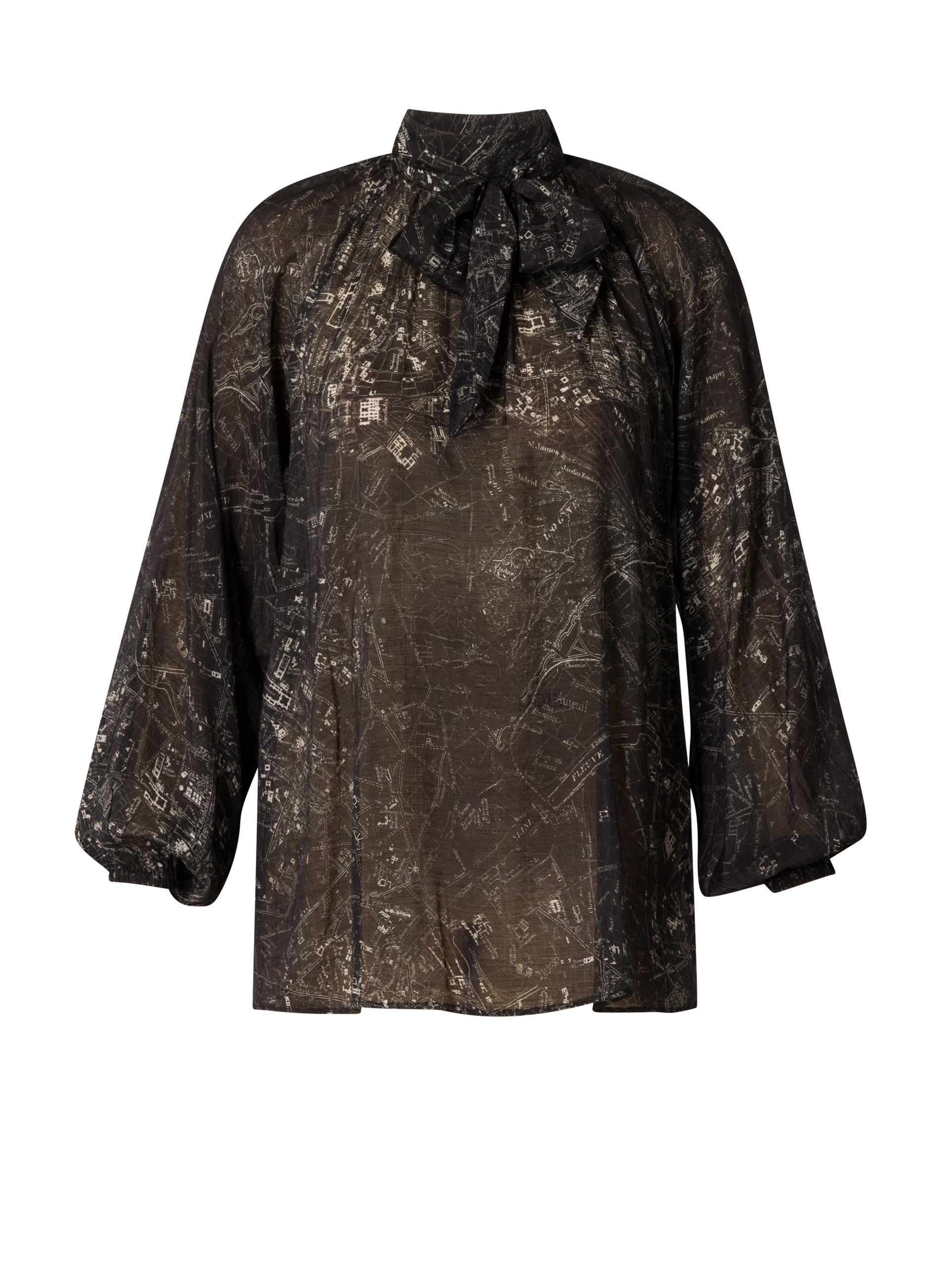 Voeg een vleugje flair toe aan je outfit met deze geweven tuniek van Yesta, voorzien van een zwart-witte print. . De semi-transparante stof en de hoge ronde kraag met striksluiting geven een vrouwelijke touch, terwijl de wijde mouwen met elastische zoom zorgen voor een trendy en comfortabele look, perfect voor elke gelegenheid. De Tammy is 78 cm lang.