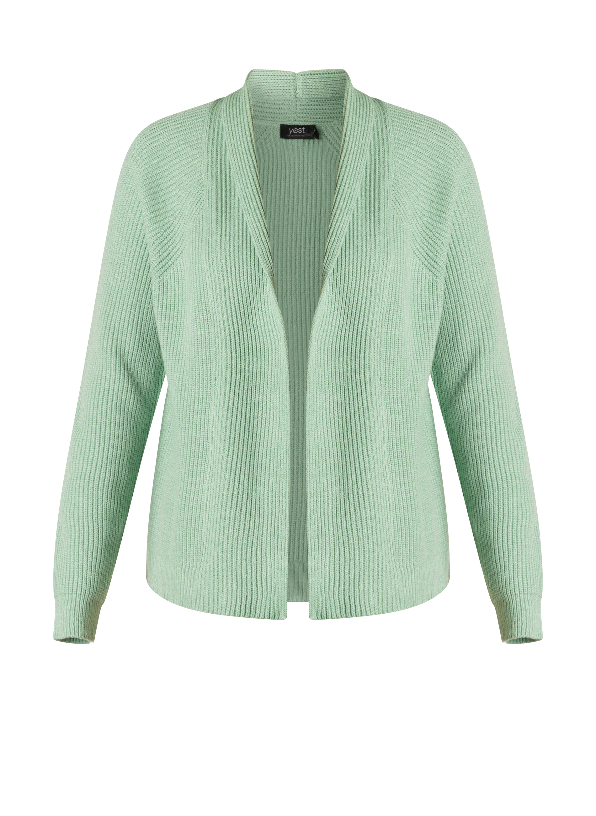 De Noralie Essential van Yesta is een gebreid kort openvallend vest die goed te combineren valt met allerlei sets. Langs de opstaande kraag een wat bredere gebreide rand. Verkrijgbaar in 3 kleuren; Black, Dark Mint en Dark Red. Lengte 70 cm. Je vindt meer vesten in de categorie grote maten vesten.