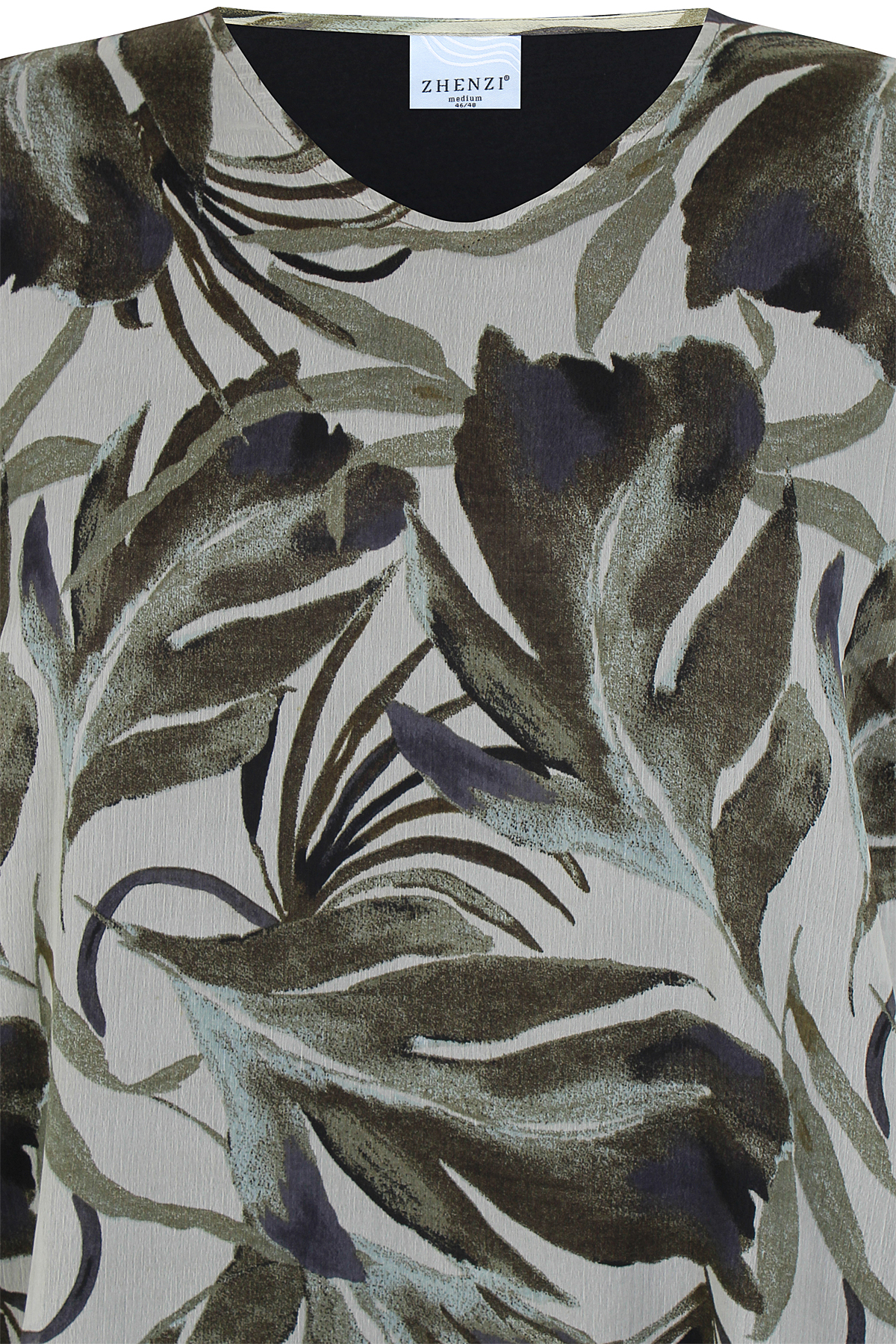 ZHENZI a-lijn tuniek bladprint | 2010435855M=46-48