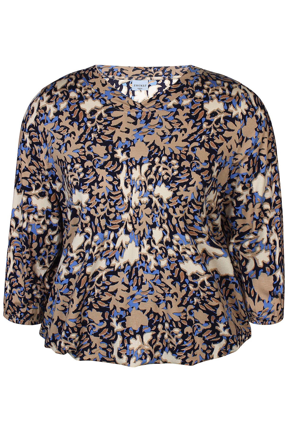 Moderne blouse van Zhenzi in een trendy camouflageprint. Beschikbaar in twee varianten. Deze blouse heeft lange mouwen en een v-hals voor een relaxte outfit. Het soepele materiaal zorgt voor optimaal draagcomfort, terwijl de losse pasvorm een flatterend effect heeft. Perfect te combineren met een jeans of een mooie broek voor een casual outfit.