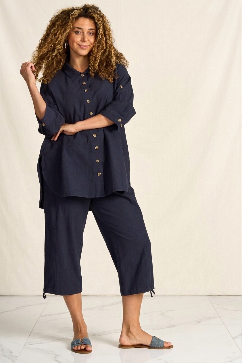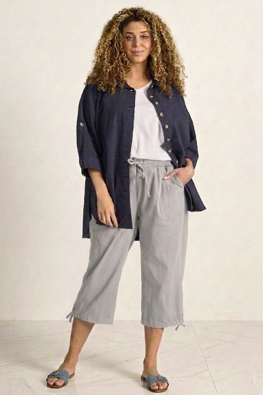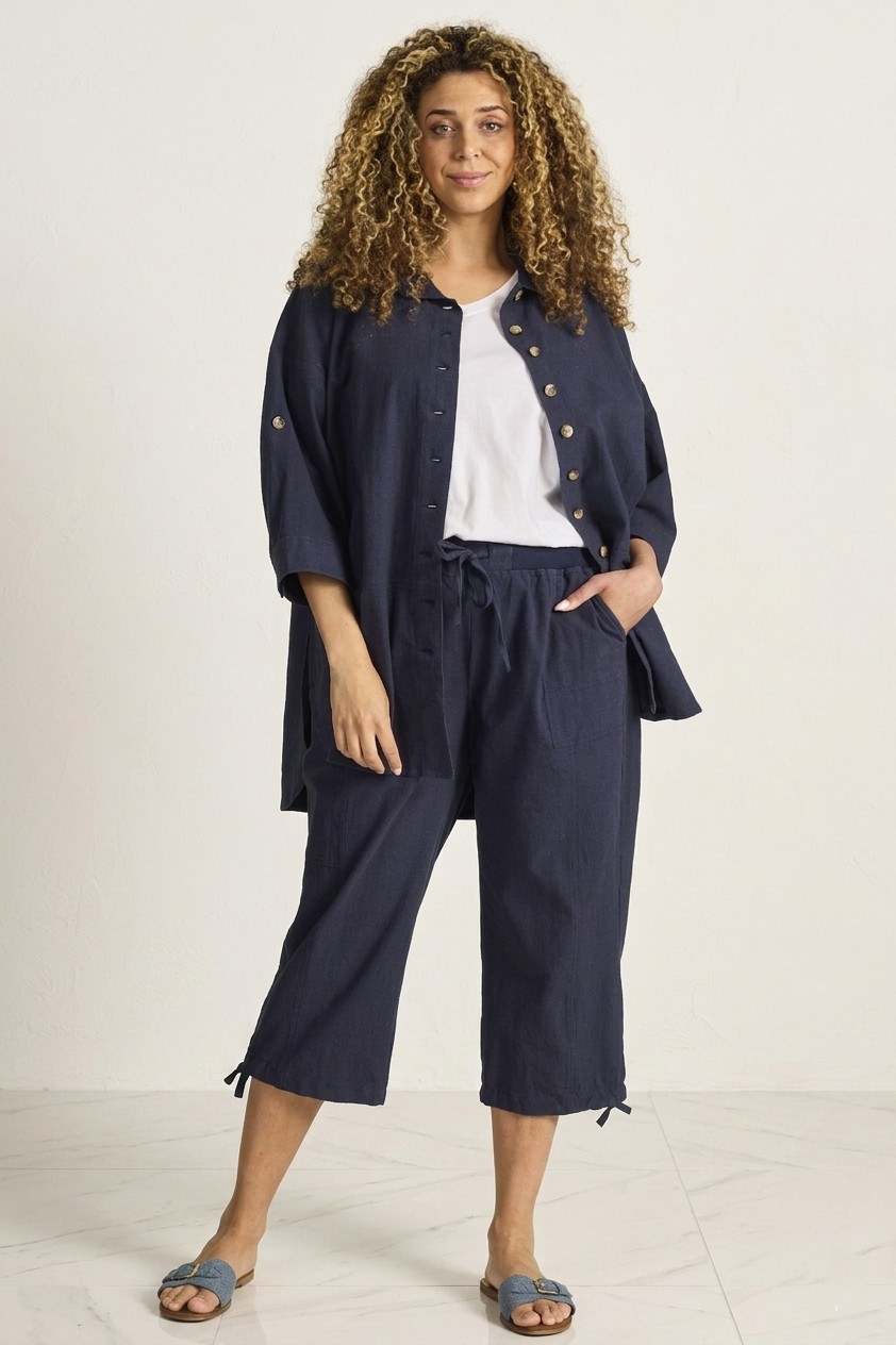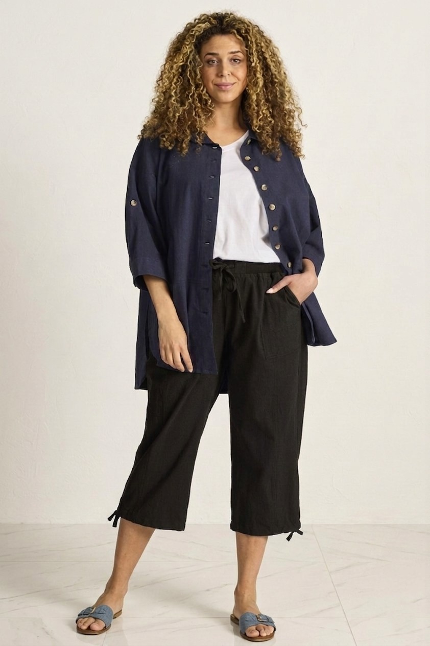 De pijpen zijn afgewerkt met een aantrekkoord aan de zoom, wat zorgt voor een speelse en sportieve uitstraling. Een ideale broek binnen de grote maten kleding die makkelijk te combineren is.