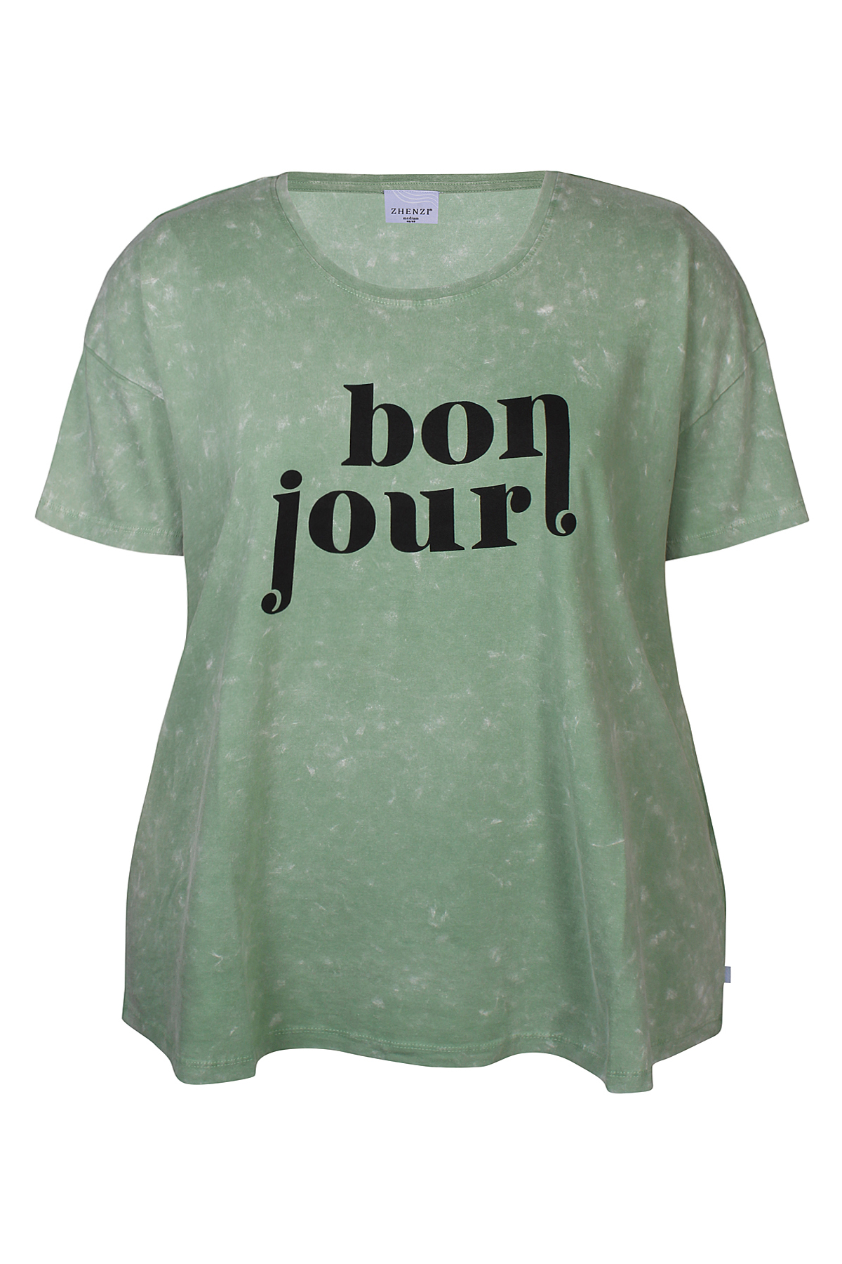 Het Zhenzi shirt 201250 is een comfortabele en stijlvolle toevoeging aan je dagelijkse garderobe. Dit gemêleerde shirt  heeft een moderne uitstraling en wordt extra speels door de “Bonjour” tekst op het voorpand. Een perfect item voor een casual maar modieuze look.